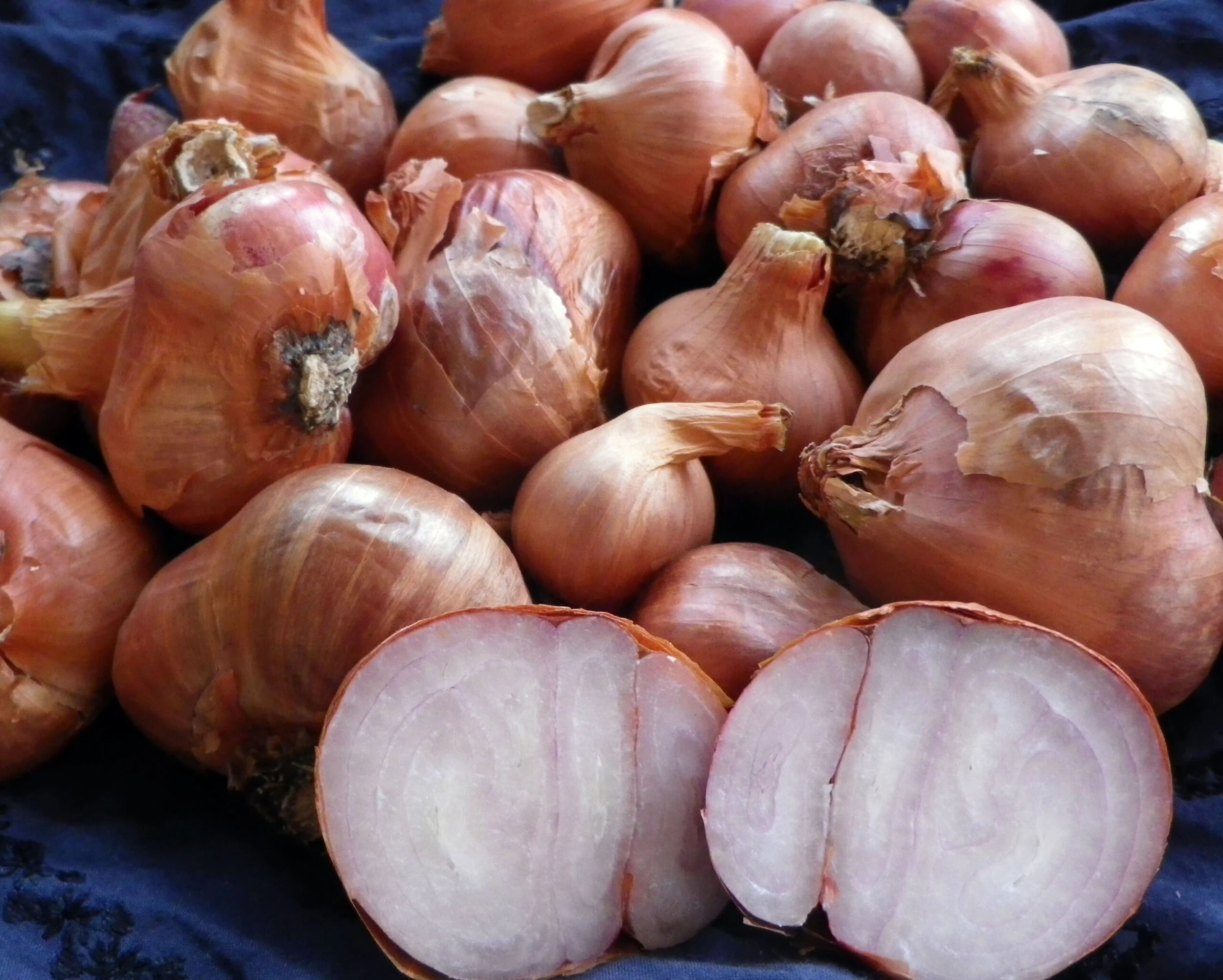 Ships in fall 2023 (Allium cepa var. aggregatum)One of several types classified as a French Red Shallot. It is usually smaller and rounder, with a slightly red-tinged tan wrapper. The flesh is pinkish white, with a purple tint in the rings. They grow more slowly, have a firmer texture, and can be stored longer than other shallots. Yields are high. Excellent flavor for use in both French and Chinese dishes calling for shallots. Comes with our . Starter Package: 8 oz.