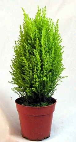 Lemon Scented Goldcrest Cypress Tree (Cupressus macrocarpa “Gold Crest”) makes an excellent indoor or outdoor tree. It is hardy in zones 7-9 or grow indoors in a cool and sunny window. Keep the tree evenly moist, not wet or dry. You can place the living tree almost anywhere for the holidays. It looks fantastic with miniature ornaments. A great gift for almost anyone or yourself.