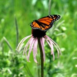 (24-36″ tall x 12-18″ wide) Native to much of the central and eastern US, Pale Purple Coneflower is a must-have flower for meadows and native plantings. Don’t let its delicate appearance fool you — this species, like other Echinacea, is hardy, durable, easy to grow, and readily naturalizes to form extensive stands. Its pollinator-friendly flowers bloom from early to mid-summer — an especially important time because nectar and pollen are sometimes scarce until summer flowers reach full bloom. Pale Purple Coneflower is also a host plant for the larvae of the Ottoe-skipper butterfly, a once-common prairie butterfly whose populations are diminishing due to loss of its native prairie habitat. Native Americans used this species in medicinal practices long before the European settlers arrived on the continent. This species blooms slightly ahead of other Purple Coneflowers, so plant both types so you and the pollinators can enjoy a full summer’s worth of blooms. The fragrant blooms make lovely cut flowers. Allow some blooms to remain on the plant to form seed heads, which will draw birds from near and far. Plant this deer-resistant beauty in full sun to part shade and well-drained soil. Once established, it will tolerate heat, humidity, and moderate drought. Avoid wet spots, which can lead to root rot. Super-adaptable, it grows in zones 3-10.