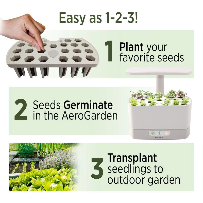 This Seed Starting System will allow you to start up to 23 seedlings indoors in your AeroGarden Harvest Slim or Harvest Elite Slim with no dirt and no mess, then easily transplant them into your outdoor garden when weather allows.