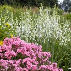 With sophisticated flair, Summer Hyacinth brings light and fragrance to your late summer border. Tall succulent flower spikes emerge from green strappy foliage and slowly unfurl their waxy white bells from the bottom up. Strong, strappy leaves give rise to tall spikes, covered in up to thirty fresh white blossoms just when your garden needs it most! Those flowers will bring bees – and lots of them – as well as a host of other pollinating insects such as butterflies and moths; but luckily they are not attractive to the local deer population. Summer Hyacinth is best planted in spring in moist, well-drained soil in a sunny spot – and where other plants will not shade them. Gardeners in cold climates may grow them as annuals, or bring the bulbs inside to overwinter in a cool, dark spot. If happy, the Summer Hyacinth is known to self-sow. An excellent cut flower with a light, pleasant fragrance.